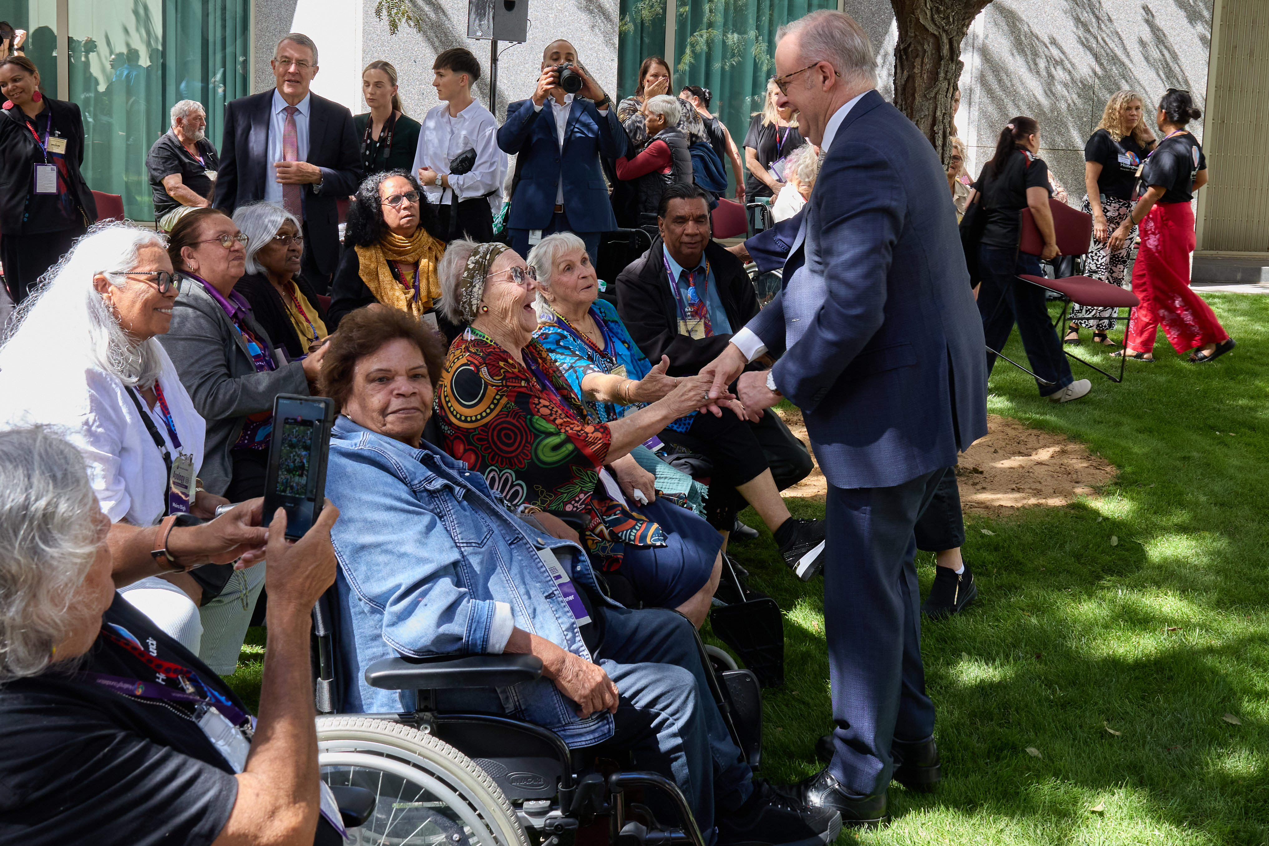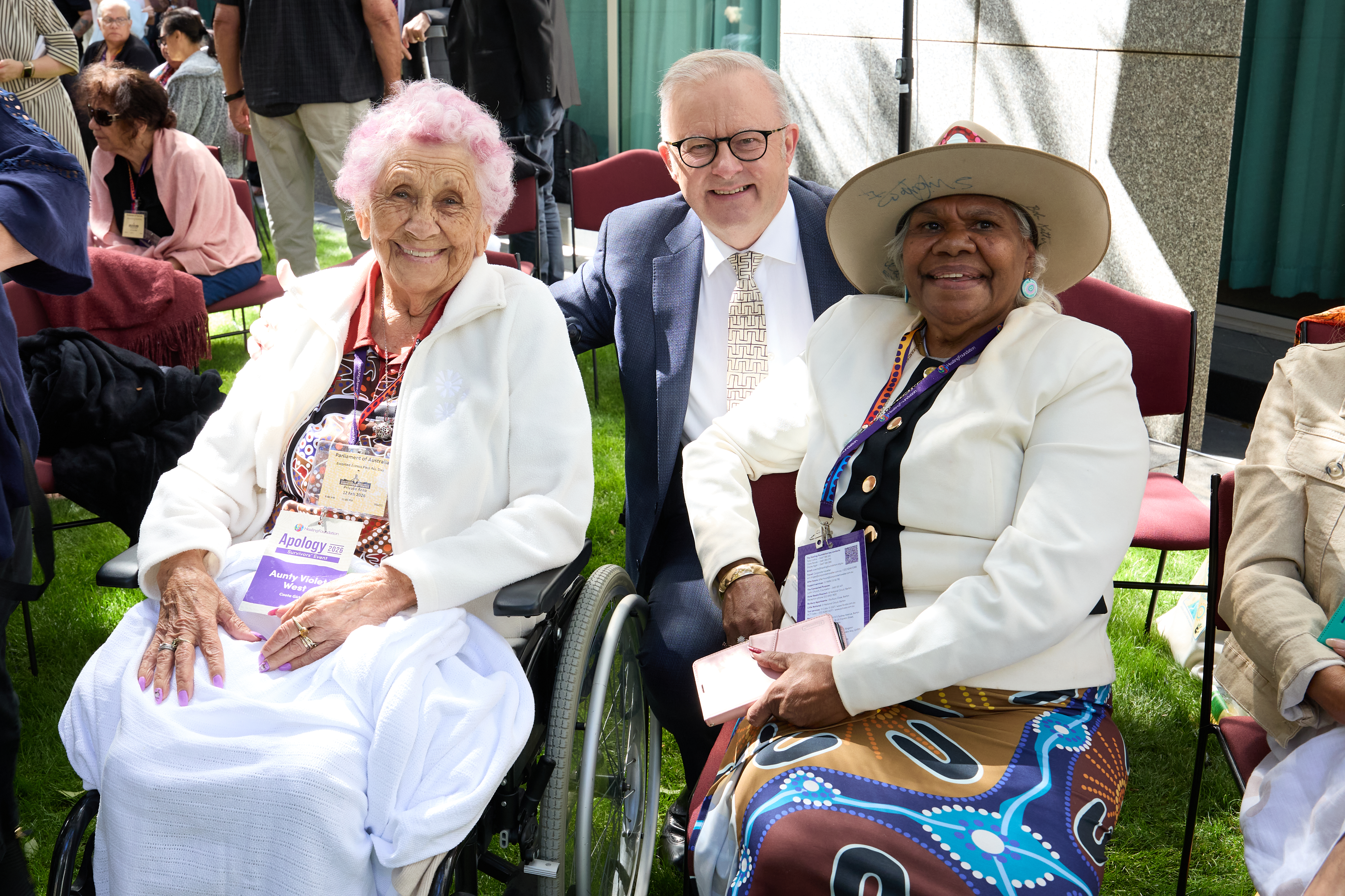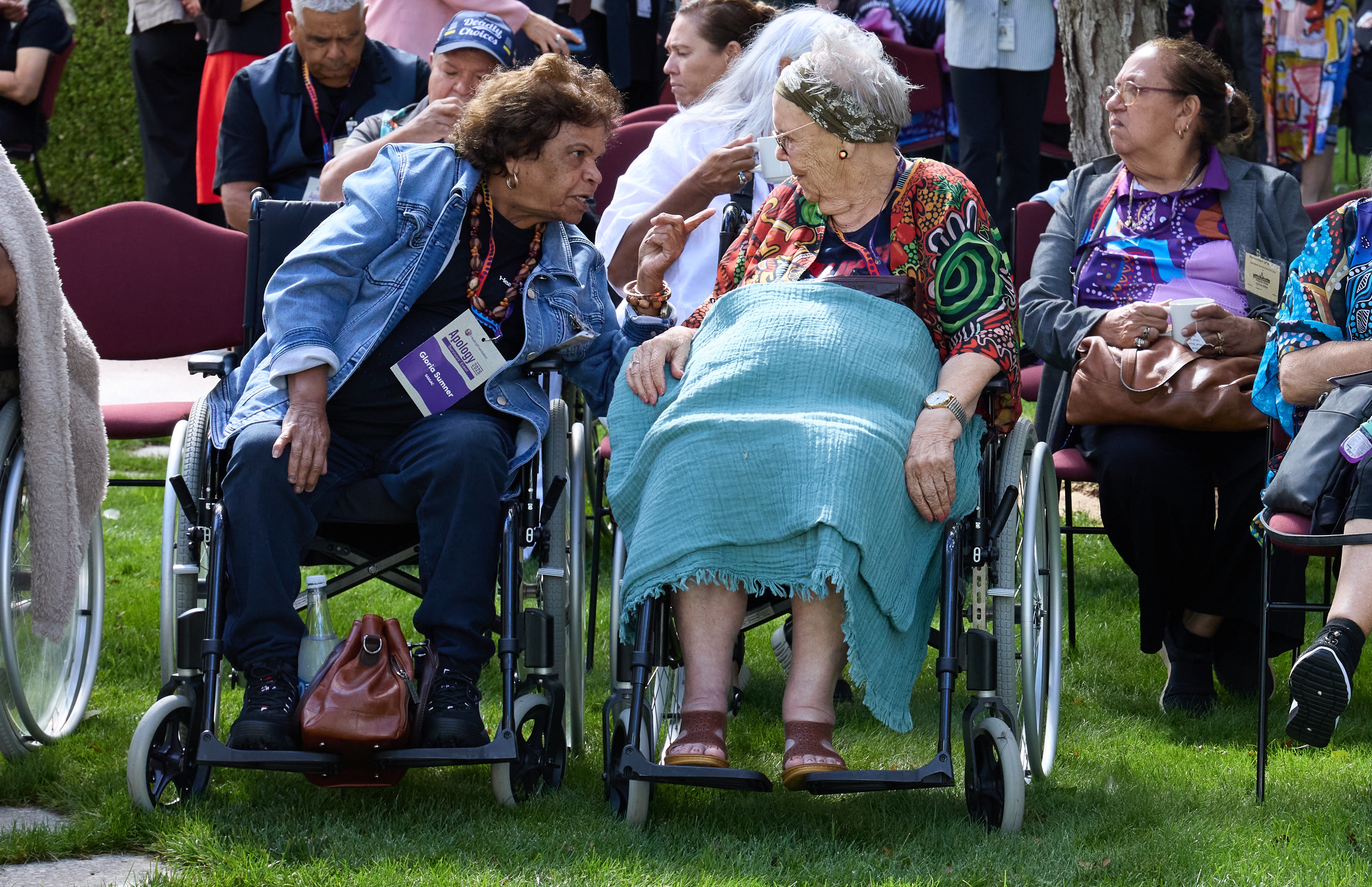 Well known author and activist, Aunty Ruth Hegarty, 97, travelled from Queensland and addressed the crowd of politicians, survivors and support people at the morning tea co-hosted by Minister for Indigenous Australians Malarndirri McCarthy and The Healing Foundation.